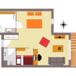 Chambres Familiales de 45 m² de 2 à 4 personnes, comprenant une entrée
